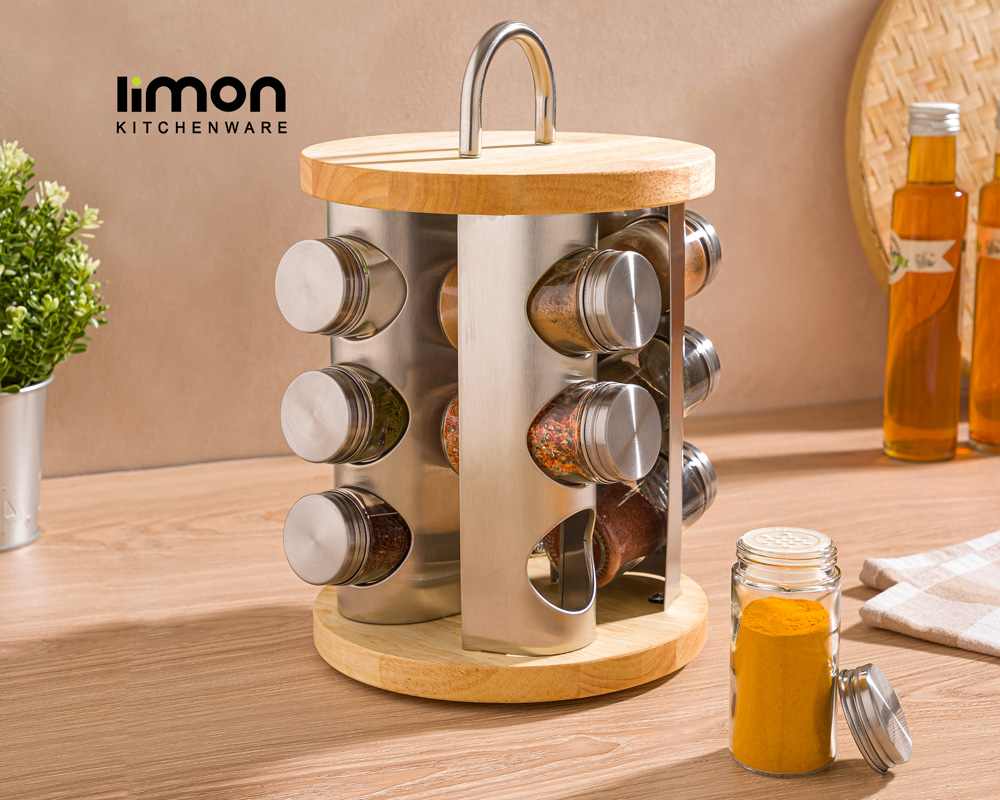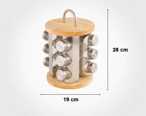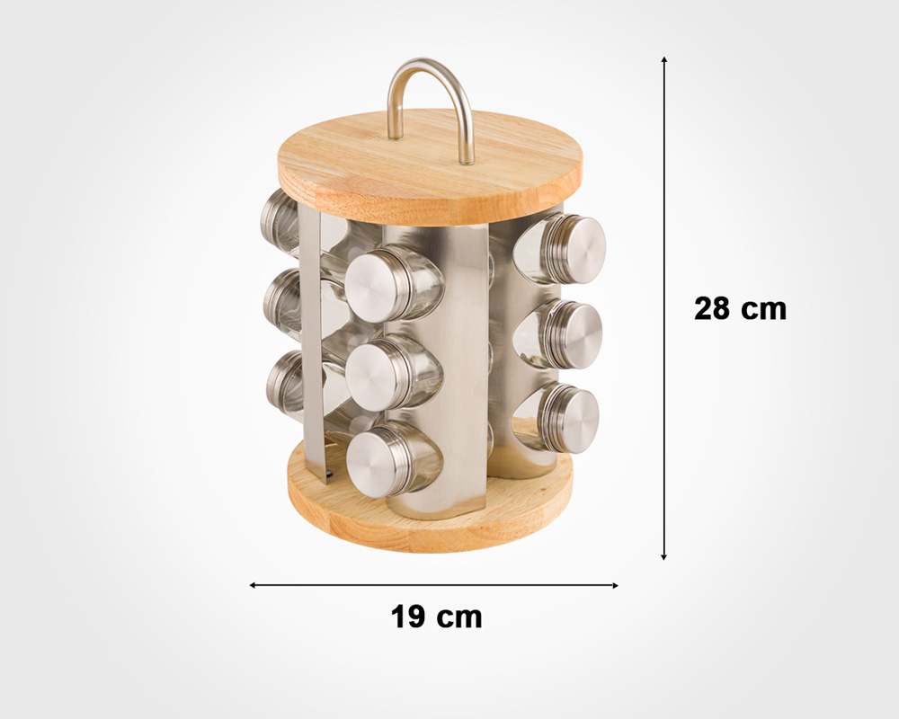 WOODEN ROTAITING SPICE RACK WITH STAINLESS STEEL LID 12 SECTION